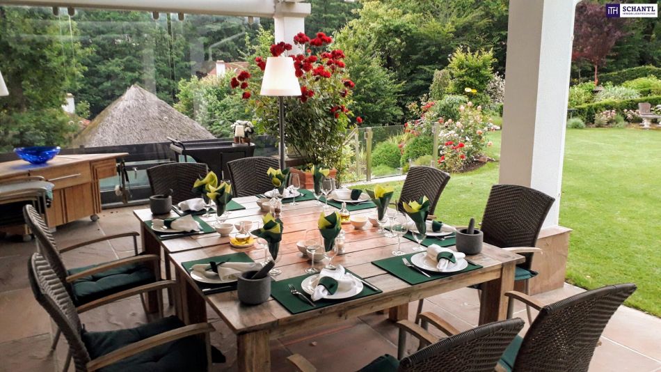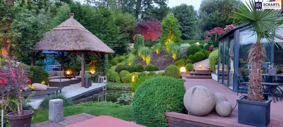 Die ca. 380 m² Wohnfläche erstrecken sich über drei Ebenen und schaffen klar strukturierte Bereiche für Familie, Gäste und Homeoffice lichtdurchflutet, offen gestaltet und mit hochwertigen Materialien ausgeführt. Der liebevoll angelegte Parkgarten, exotische Gartenarchitektur und perfekt integrierte Outdoor-Bereiche schaffen ein einzigartiges Ambiente, das Natur und Design harmonisch verbindet. Unterstützt wird dieses besondere Wohngefühl durch ein hochwertiges SONOS-HiFi-System, das das gesamte Objekt beschallt.