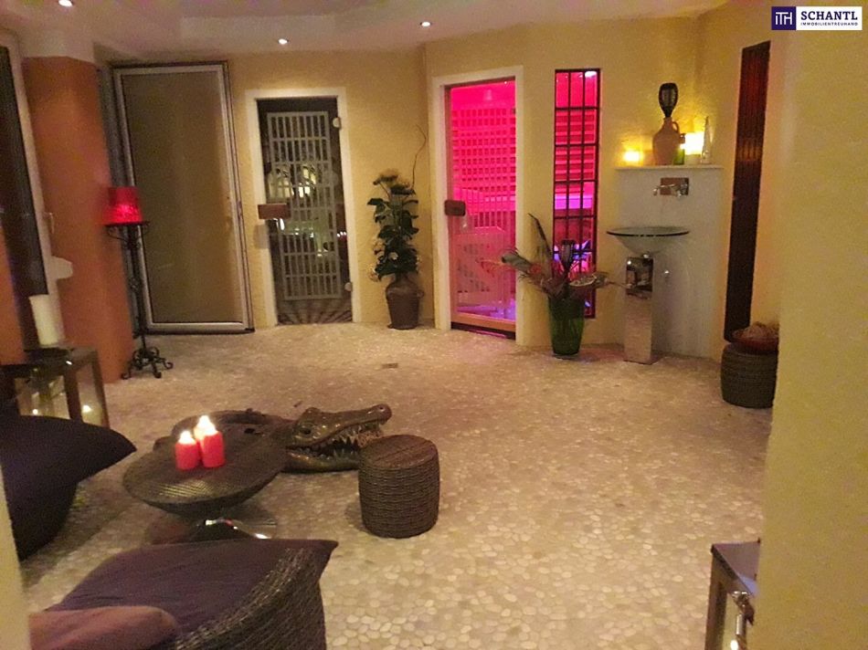 Für Entspannung und Genuss stehen ein exklusiver Wellnessbereich zur Verfügung. Darüber hinaus lädt ein außergewöhnlicher Bereich zu privaten Empfängen und atmosphärischen Abenden ein. Komfort, Technik und Sicherheit sind ebenso selbstverständlich wie hochwertige Ausstattung: vollautomatische Gartenpflege, modernes Alarmsystem, großzügige Doppelgarage mit Direktzugang und vieles mehr. Ein zusätzliches Baugrundstück eröffnet darüber hinaus wertvolle Optionen für Erweiterungen, ein Gästehaus oder eine langfristige Investition.