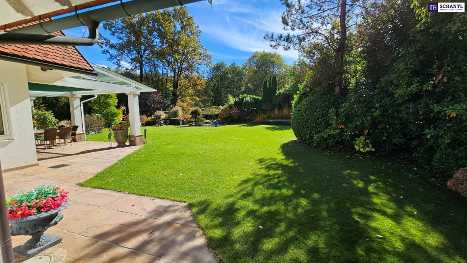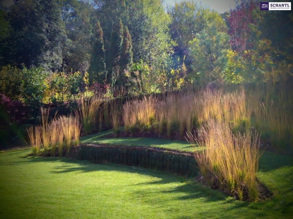 1.500 m² Parkgarten, sorgfältig gestaltet wie ein kleines Naturkunstwerk. Jeder Blick aus dem Haus öffnet sich in dieses grüne Refugium, vollkommen uneinsichtig und einzigartig – ein Ort, an dem man sofort durchatmet.