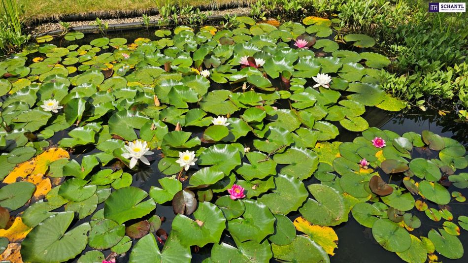 Sanftes Wasserplätschern, exotische Vibes und Momente, die wie aus einem Bali-Retreat wirken. Das Bali-Haus mit Blick auf den Seerosenteich schafft eine Atmosphäre tiefer Ruhe, begleitet von stimmungsvoller Musik über die Sonos-HiFi-Anlage. Ein Platz, an dem die Zeit langsamer vergeht.