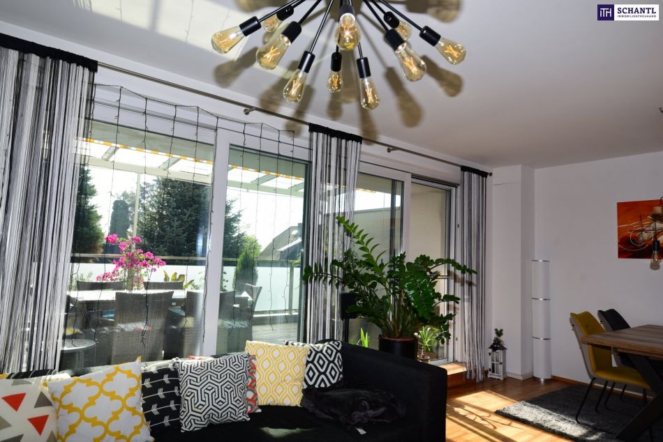 ein Highlight der Wohnung ist die großzügige Terrasse, mit ungefähr 25 m² sie bietet genug Platz für gemütliche Abende im Freien, BBQs mit Freunden oder entspannte Stunden mit Blick ins Grüne, der ungestörte, idyllische Ausblick auf die umliegende Natur ist eine wahre Oase der Ruhe