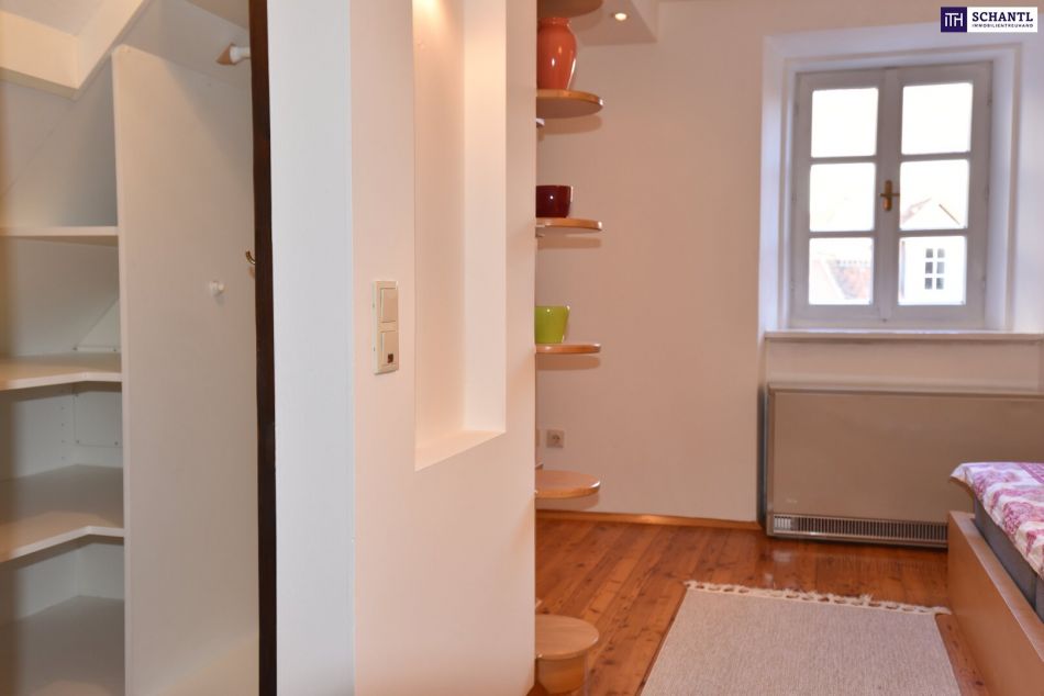 Diese außergewöhnliche Wohnung befindet sich im 3. Obergeschoss eines denkmalgeschützten Gebäudes direkt in der Grazer Fußgängerzone.