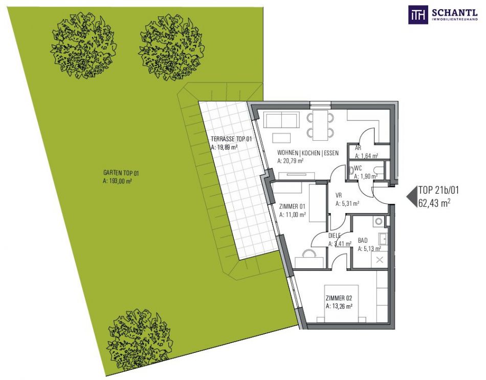 Anmerkung: Tiefgaragenplätze können um € 24,500,- zusätzlich erworben werden.