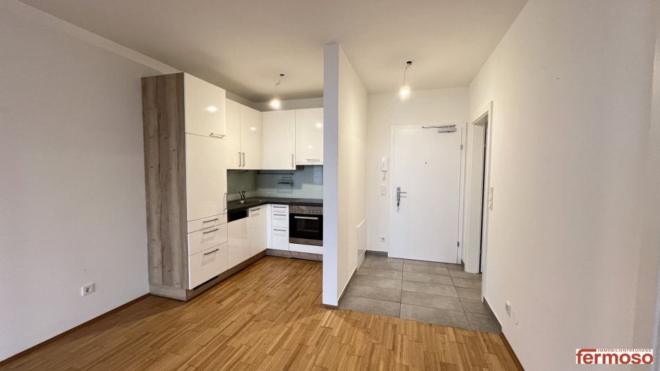 Der offen gestaltete Wohnbereich bildet das Herzstück der Wohnung und schafft gemeinsam mit der Küche ein modernes, lichtdurchflutetes Wohnambiente.