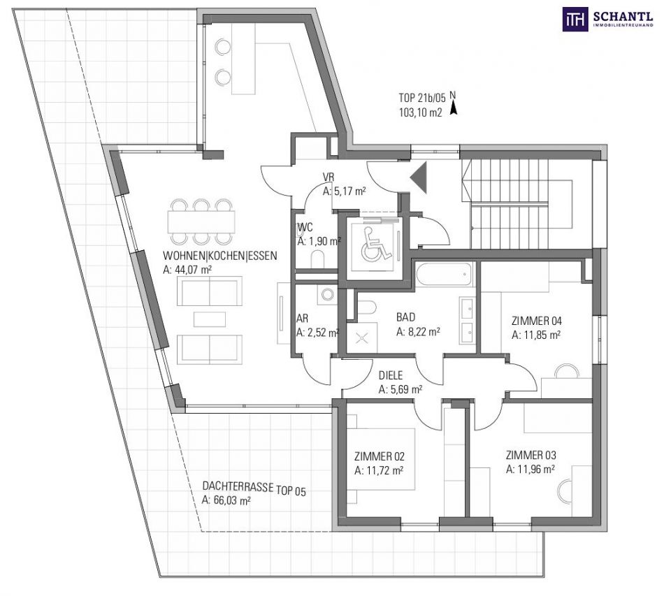 Willkommen in Ihrem neuen Zuhause – ein atemberaubendes Penthouse, das höchste Wohnqualität, modernes Design und eine erstklassige Lage vereint. Mit einer großzügigen Wohnfläche von 103 m² sowie sensationelle 66 m² Dachterrasse. Es erwartet Sie eine durchdachte Raumaufteilung und eine exquisite Ausstattung, welche diese Immobilie zu einem Wohnerlebnis der Extraklasse macht.