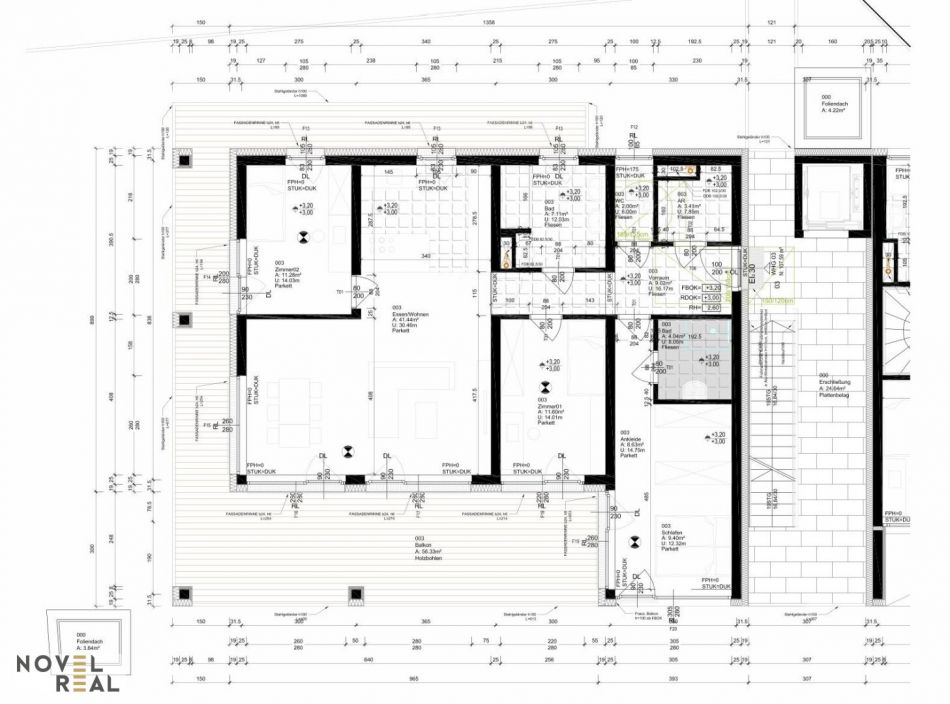 Diese großzügige 4-Zimmer-Wohnung mit einem traumhaft großen, überdachten Balkon überzeugt durch eine durchdachte Raumaufteilung und ein harmonisches Zusammenspiel von Wohnkomfort und Funktionalität. Die Wohnung bietet eine klare, funktionale Raumstruktur mit einem großzügigen Wohnbereich und fließenden Übergängen zwischen Essen und Küche. Der zentrale Wohnraum ist weitläufig und bildet das kommunikative Herzstück der Wohnung. Die Küche ist direkt angebunden und ermöglicht kurze Wege beim Kochen und Servieren. Der angrenzende Essbereich mit Zugang zur Terrasse schafft Raum für gemeinsame Mahlzeiten und geselliges Beisammensein.Ein separates Duschbad sowie ein WC sind über den Flur erreichbar und funktional voneinander getrennt. Der private Bereich umfasst ein ruhig gelegenes Schlafzimmer sowie zwei weitere Zimmer, die flexibel als Kinder-, Gäste- oder Arbeitszimmer genutzt werden können. Die Raumaufteilung ist effizient, die Proportionen ausgewogen, und die Wandstärken sowie Türbreiten sind baulich präzise ausgeführt - ideal für individuelle Einrichtungskonzepte.
