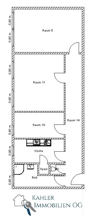 Die Aufteilung der Wohnung stellt sich wie folgt dar:Vorraum