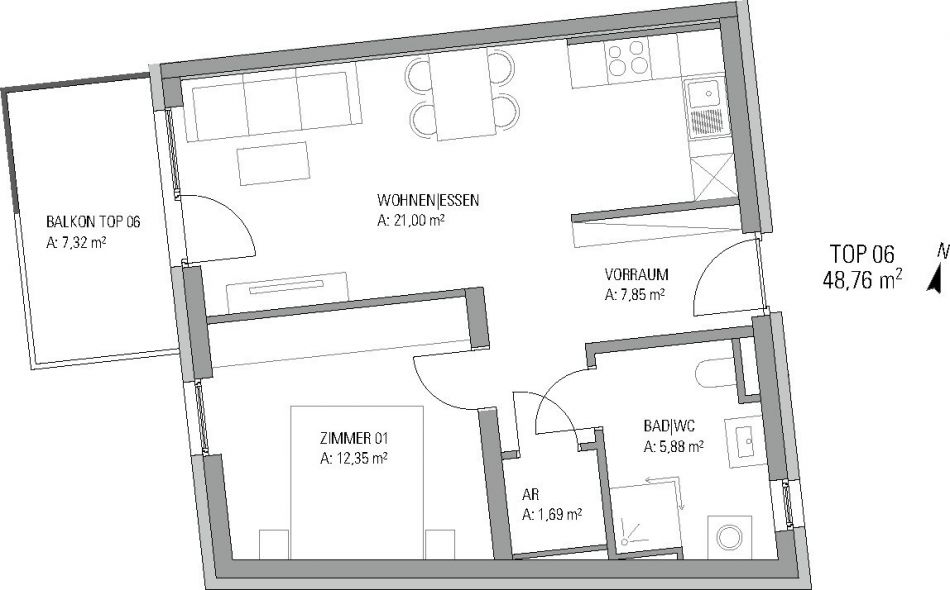Bruttomiete inkl. BK, Heizkostenakonto und Tiefgarage: € 817,30