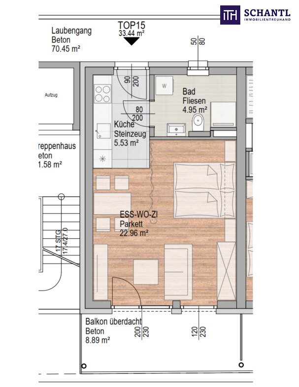 - Wohnfläche: 33,44 m² – clever genutztes Raumkonzept.