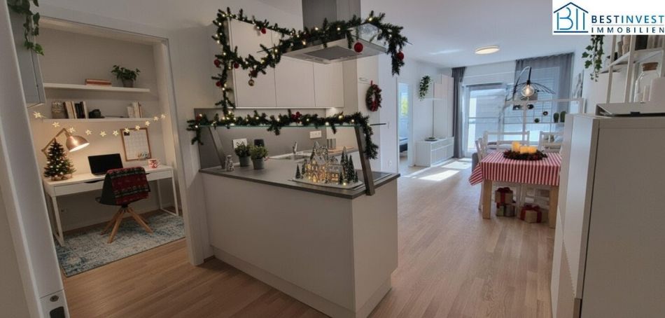 Kofferpacken und ab 1. Februar 2025 einziehen - Top ausgestatteter Erstbezug, zentral gelegen. Langzeitmiete! NEUBAU Messequadrat in der Fröhlichgasse.Hier finden Sie eine traumhafte 3-Zimmer-Penthousewohnung mit hellen Räumen und großer Terrasse. Ein großer offener Wohnraum mit toller Tischlerküche und Ausgang