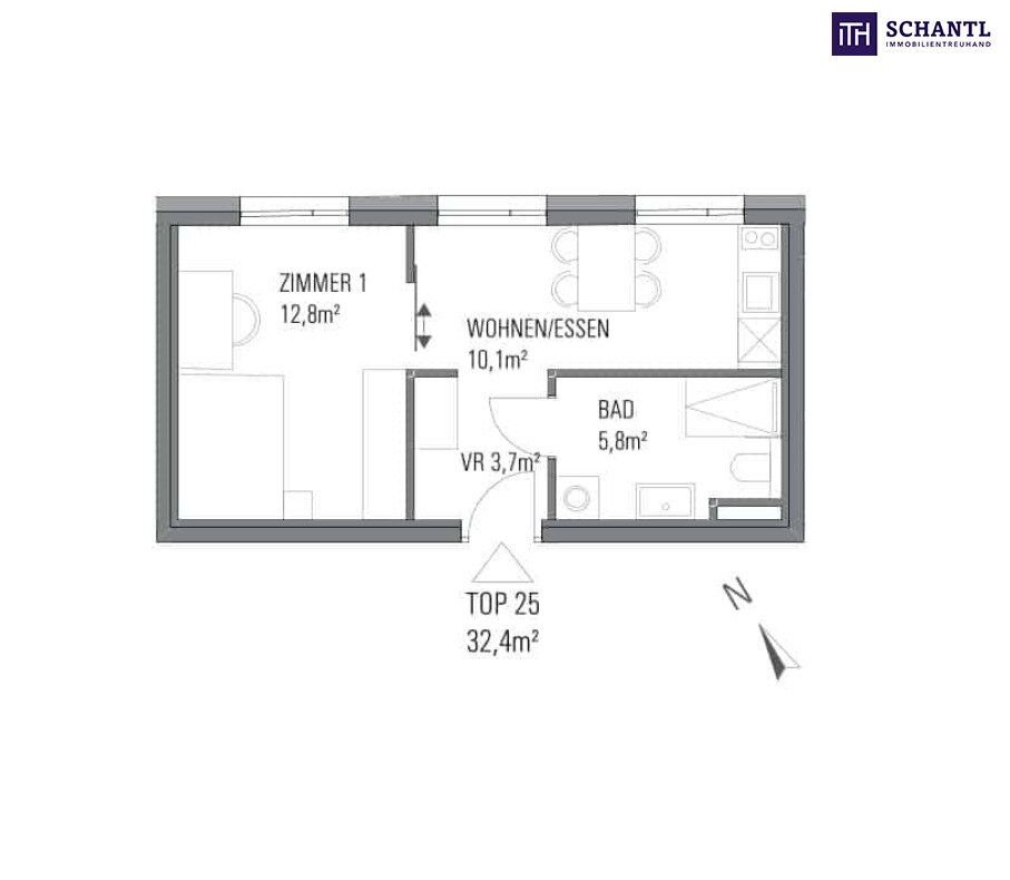 - 2-Zimmer-Wohnung mit 32,4 m² Wohnfläche