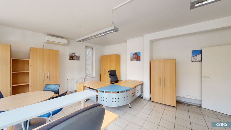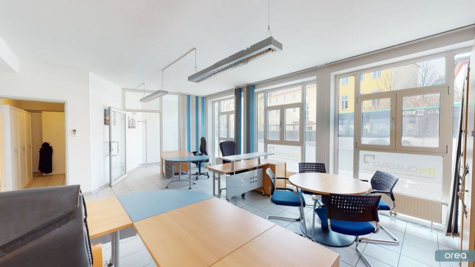 Die Fläche präsentiert sich hell, offen und funktional, mit großen Fensterflächen und klarer Raumstruktur. Durch die Lage im Erdgeschoss ist das Büro barrierearm zugänglich und auch für Kundenverkehr gut geeignet.