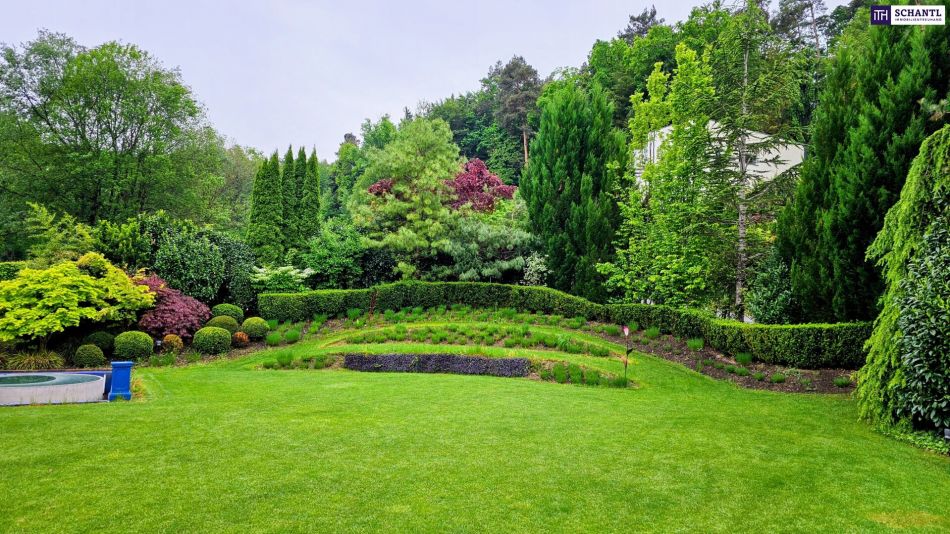 1.500 m² Parkgarten, sorgfältig gestaltet wie ein kleines Naturkunstwerk. Jeder Blick aus dem Haus öffnet sich in dieses grüne Refugium, vollkommen uneinsichtig und einzigartig – ein Ort, an dem man sofort durchatmet.