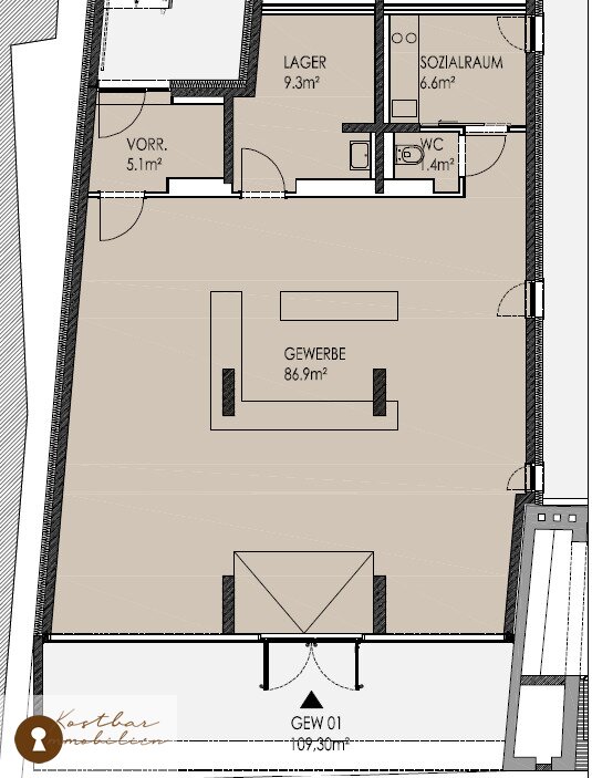 Geräumige Fläche: Auf etwa 109,30 m² bieten wir Ihnen Platz, um Ihr volles Potenzial zu entfalten. Ausreichend Raum für Mitarbeiter, Kunden und kreative Entfaltung.