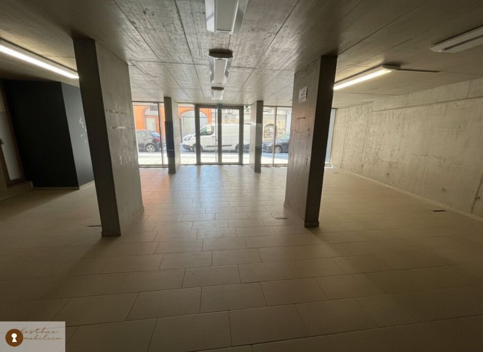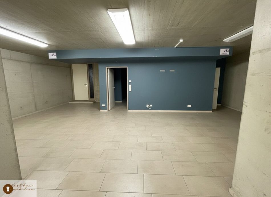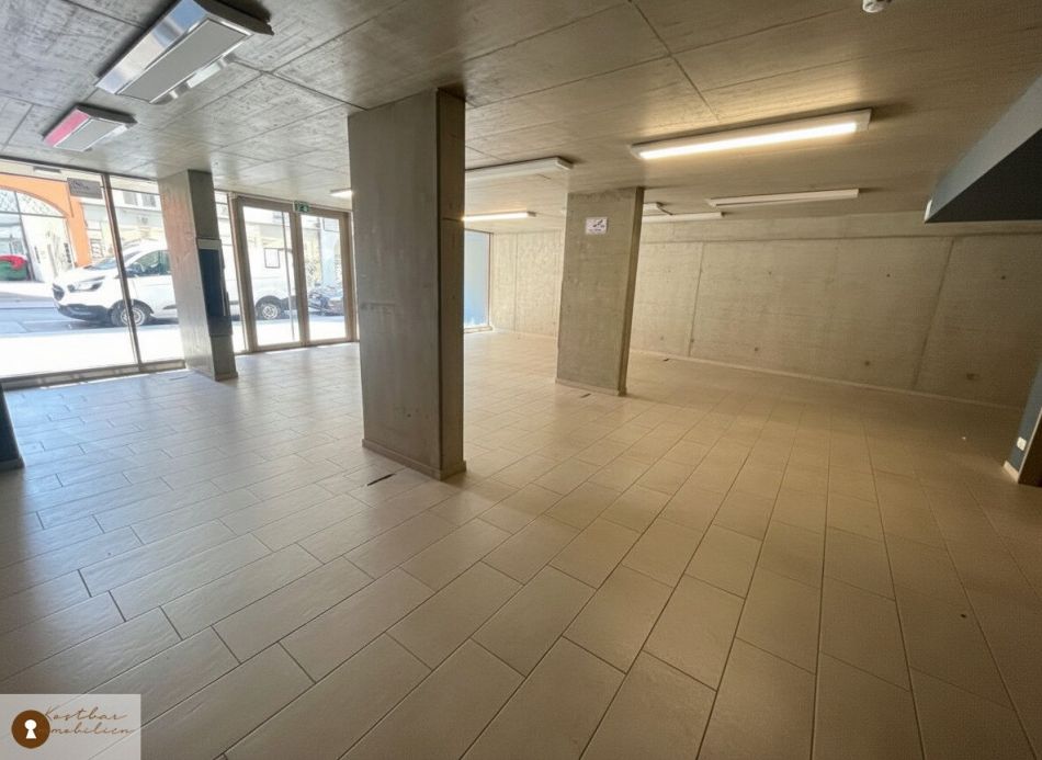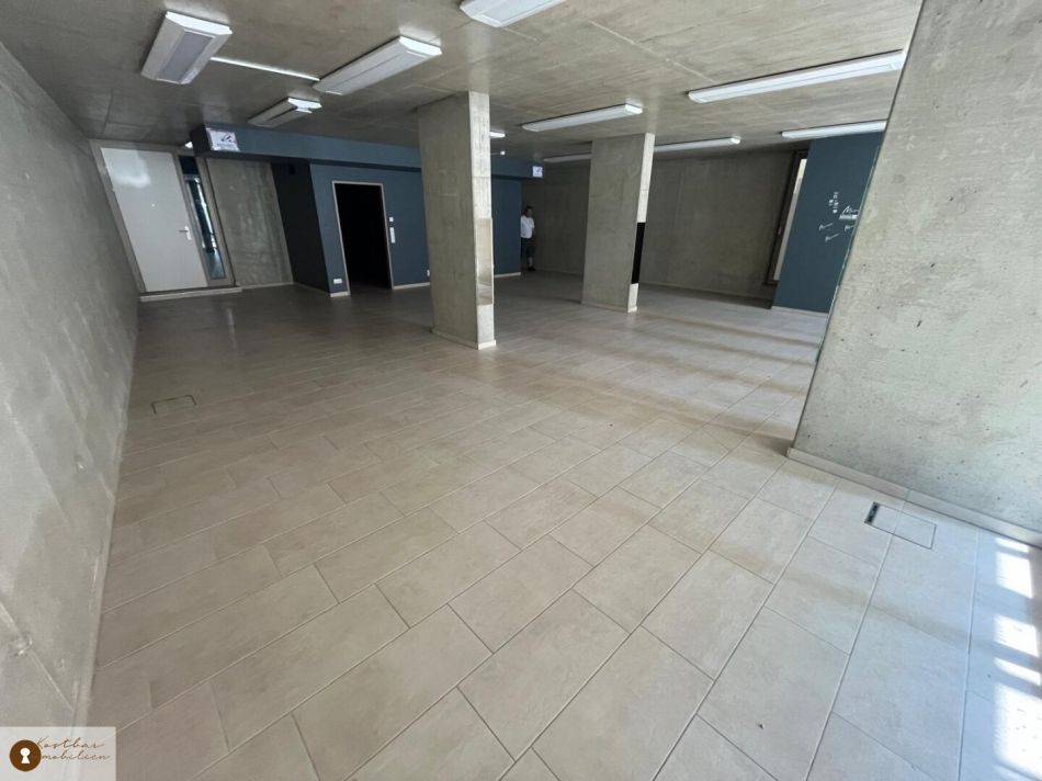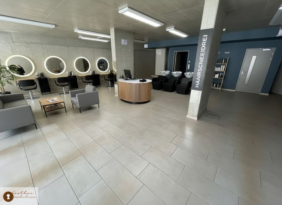 Zeitgemäßes Design: Die offene Verkaufsfläche im trendigen Loft-Stil mit hochwertigem Fliesenboden bildet die perfekte Grundlage für Ihre persönliche Gestaltung.