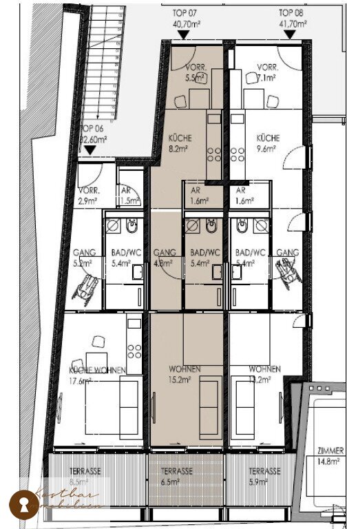 Ca. 40,7 m² Wohnfläche auf der zweiten Etage mit Lift