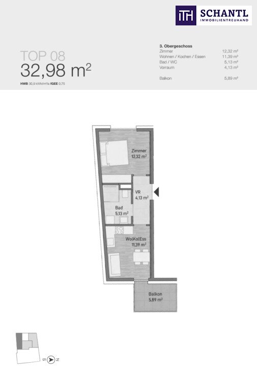 - Bad/WC mit 5,13m², mit Dusche und Waschmaschinenanschluss