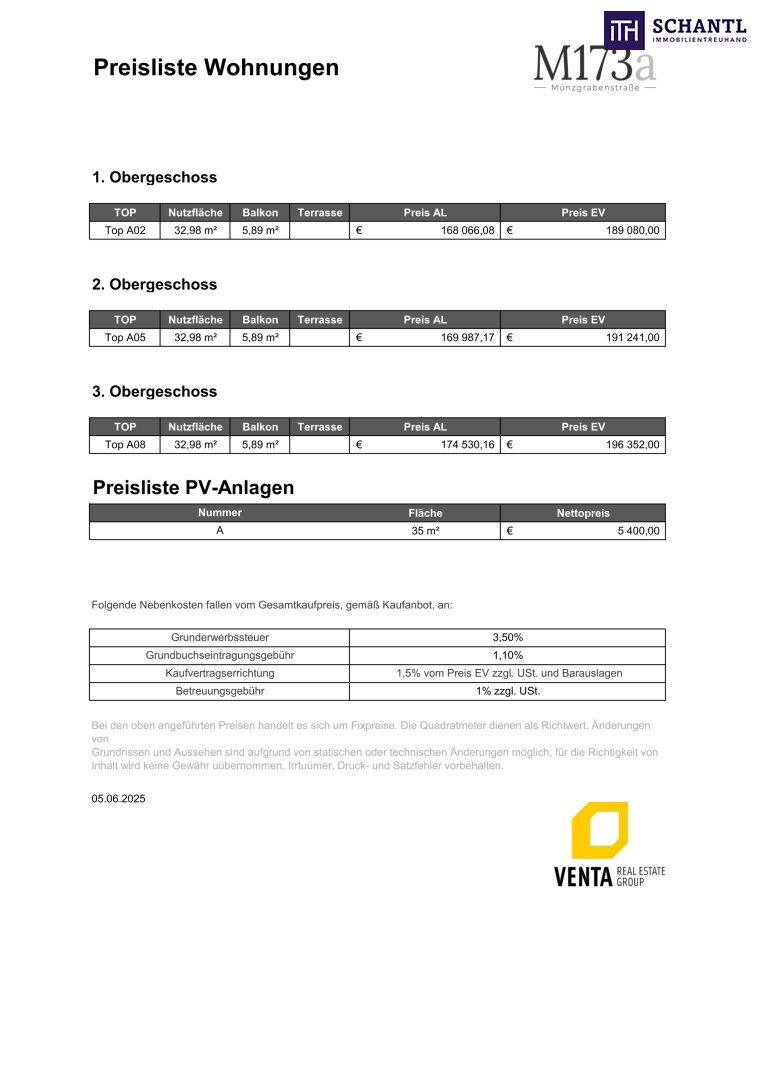 - der KP der Wohnung Top A.08 beträgt NETTO (für die gewerbliche Vermietung), € 174.530,16