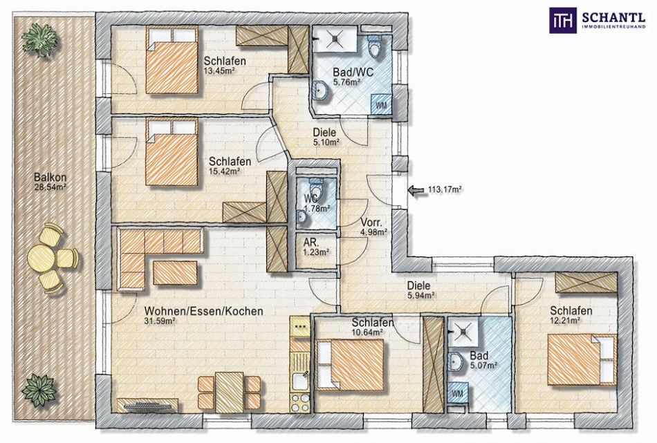 - ein weiters Badezimmer mit 5,07m², Fenster, Dusche und Waschmaschinenanschluss