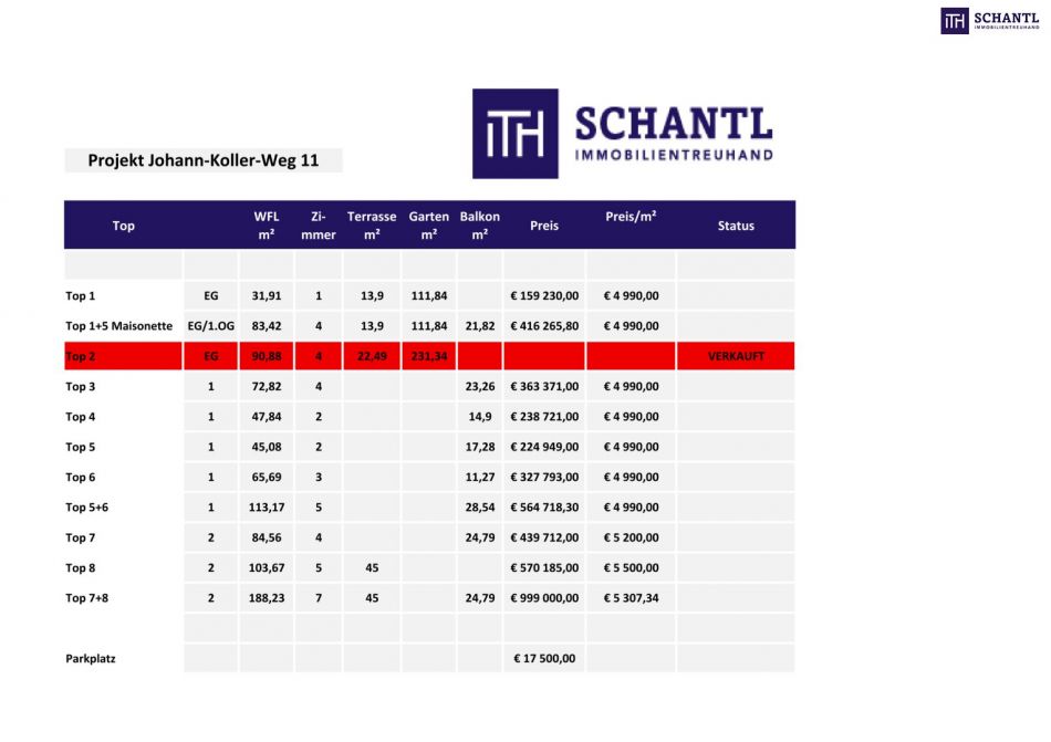 - Parkplatz: € 17.500,00 brutto (Parkmöglichkeit auch in der Sackstraße vorhanden)
