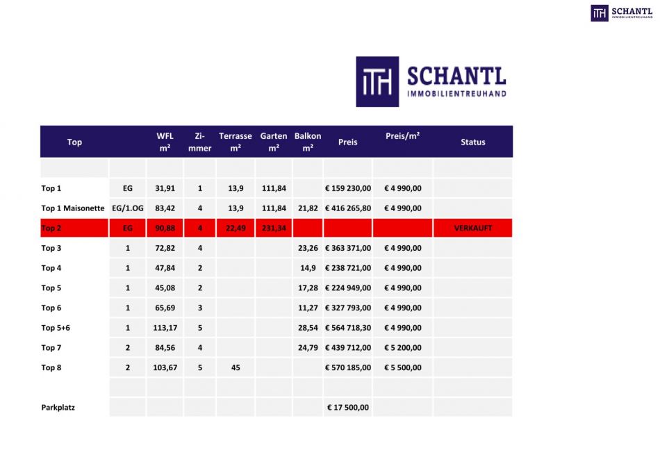 - SENSATIONELLER PREIS mit "nur" 4.990,00 /m² ( nur für die ersten 4 verkauften Einheiten)!!!!!!!!!!!