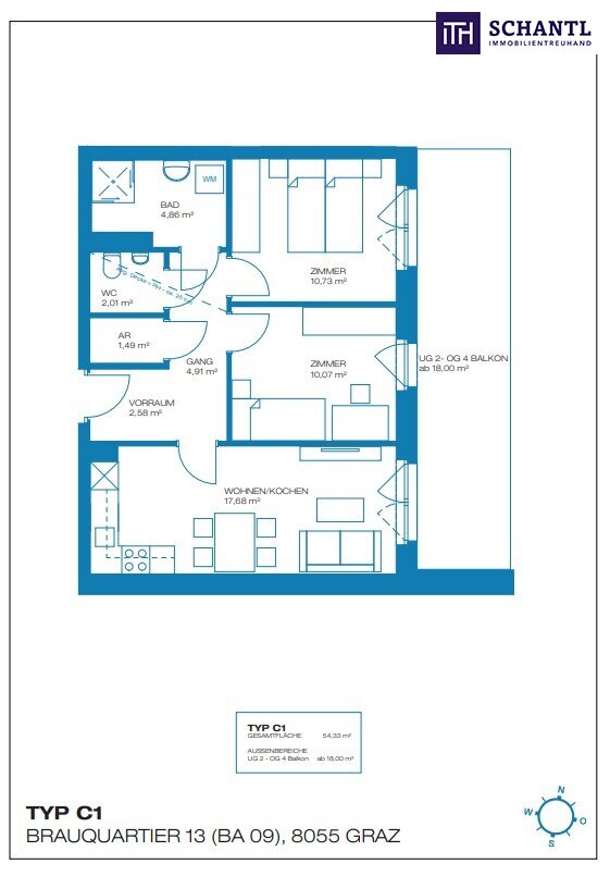 Diese 53m² Wohnung mit eigenem Abstellplatz ist der ideale Ort für all jene, die urbanes Leben mit der Ruhe eines eigenen Rückzugsortes verbinden möchten. Genießen Sie den Komfort, den Ihnen diese Wohnung bietet, und profitieren Sie von der praktischen Lage sowie dem zusätzlichen Parkplatz.