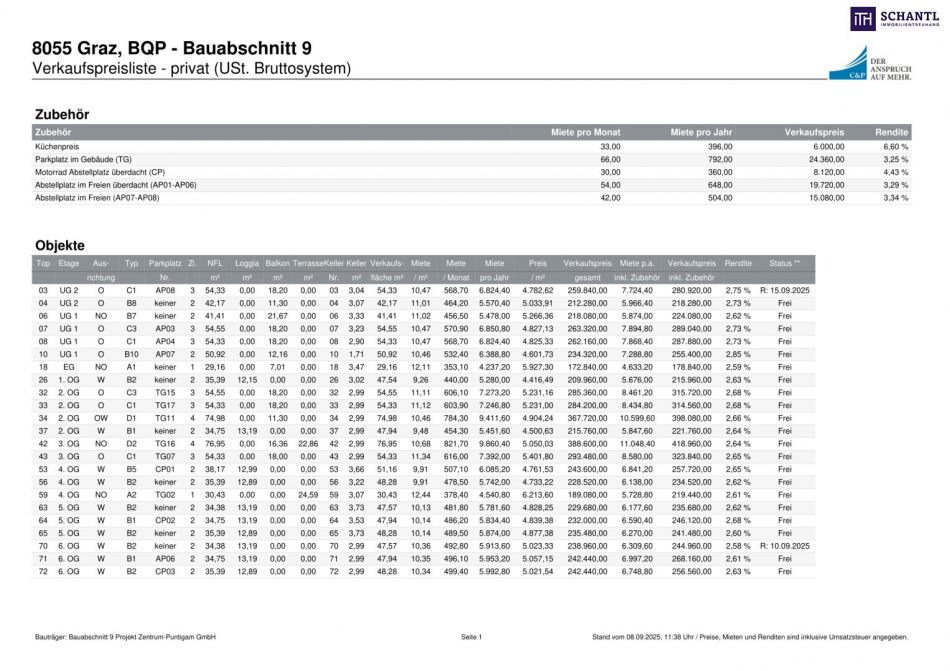 - ein Abstellplatz im Freien überdacht ist im KP inkludiert!