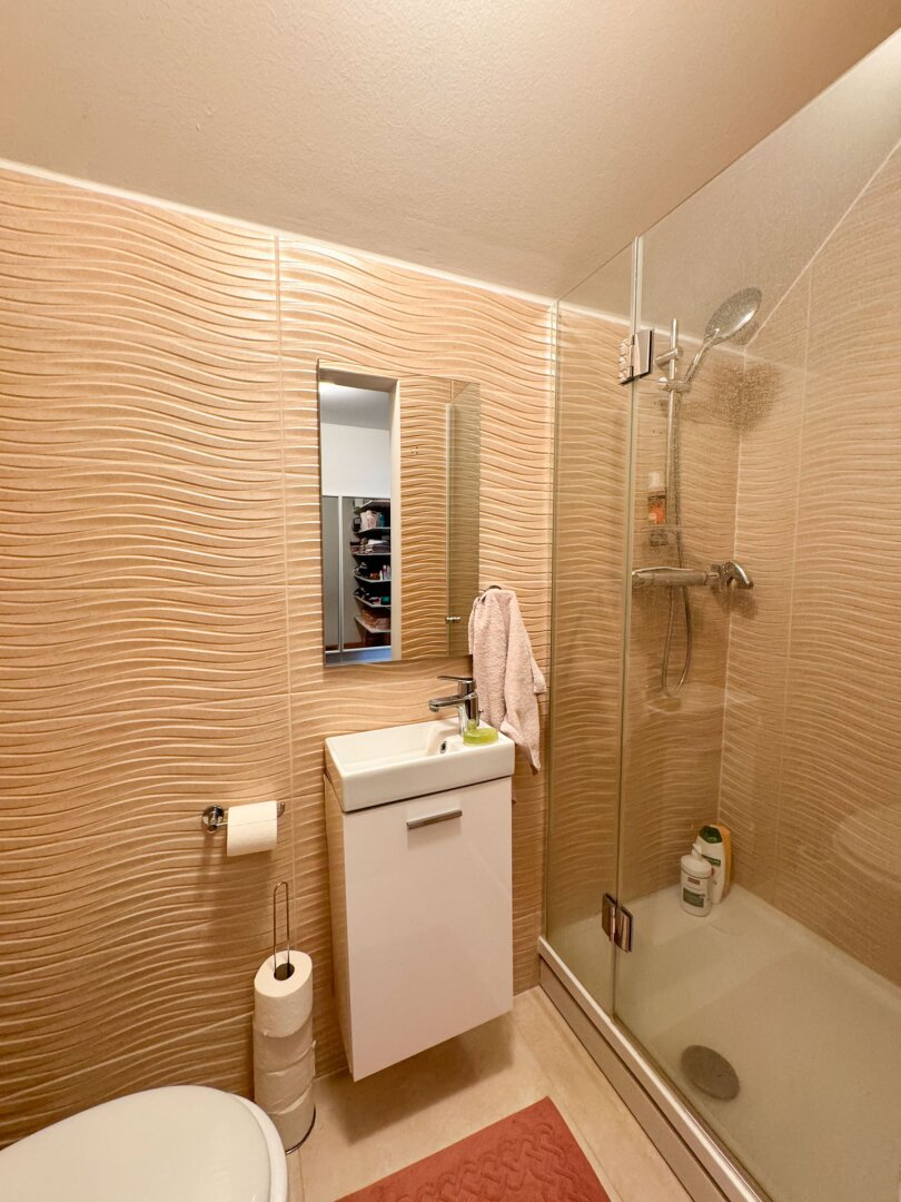 - ein 24,02 m2 großes, helles Schlafzimmer mit begehbarem Schrankraum und einem Badezimmer mit Dusche und einem WC
