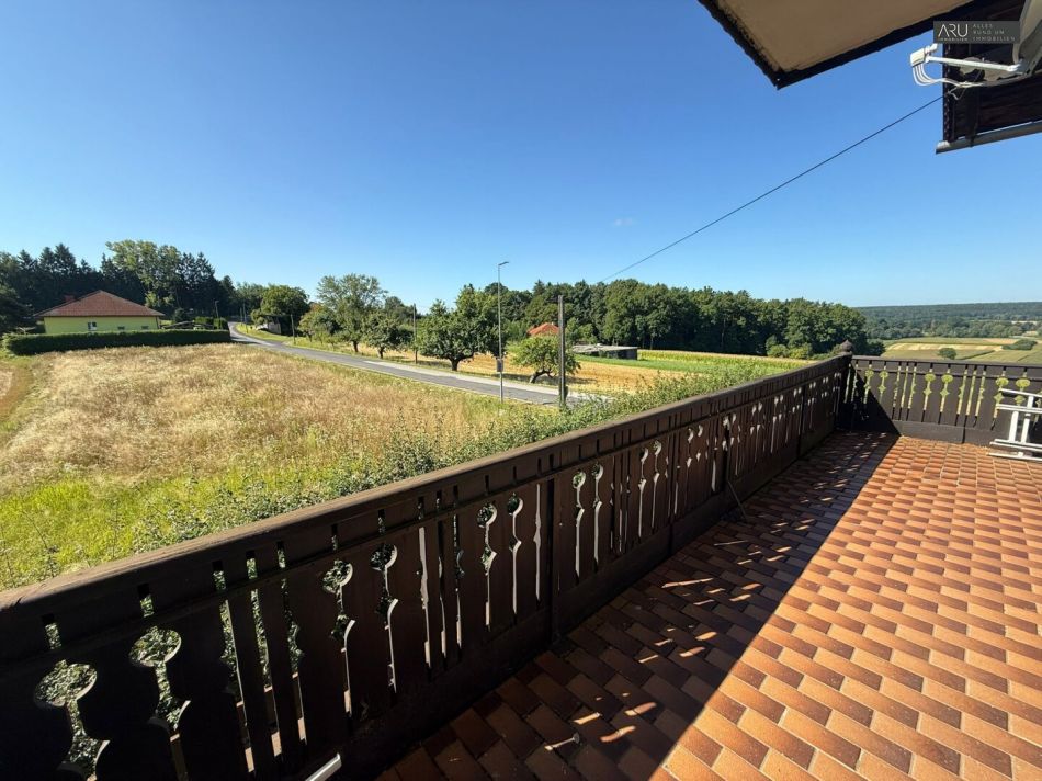 Ein besonderes Highlight ist der großzügige Balkon im Obergeschoss, von dem aus man eine fantastische Aussicht über die sanft hügelige Landschaft genießt – perfekt, um den Tag in Ruhe ausklingen zu lassen. Die ruhige, naturnahe Lage rundet das Gesamtbild dieses Hauses ab.