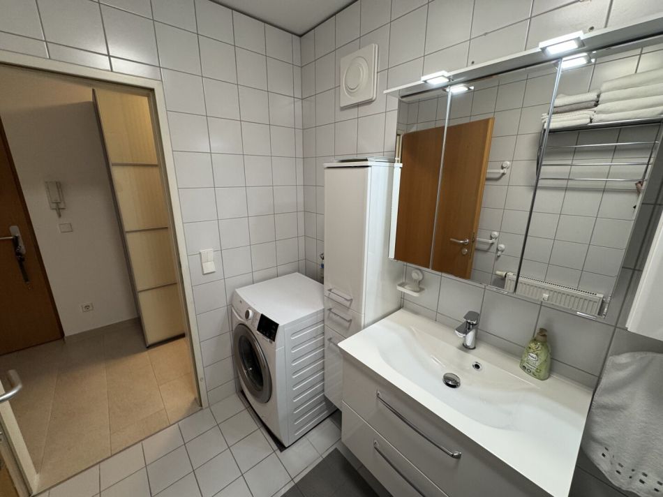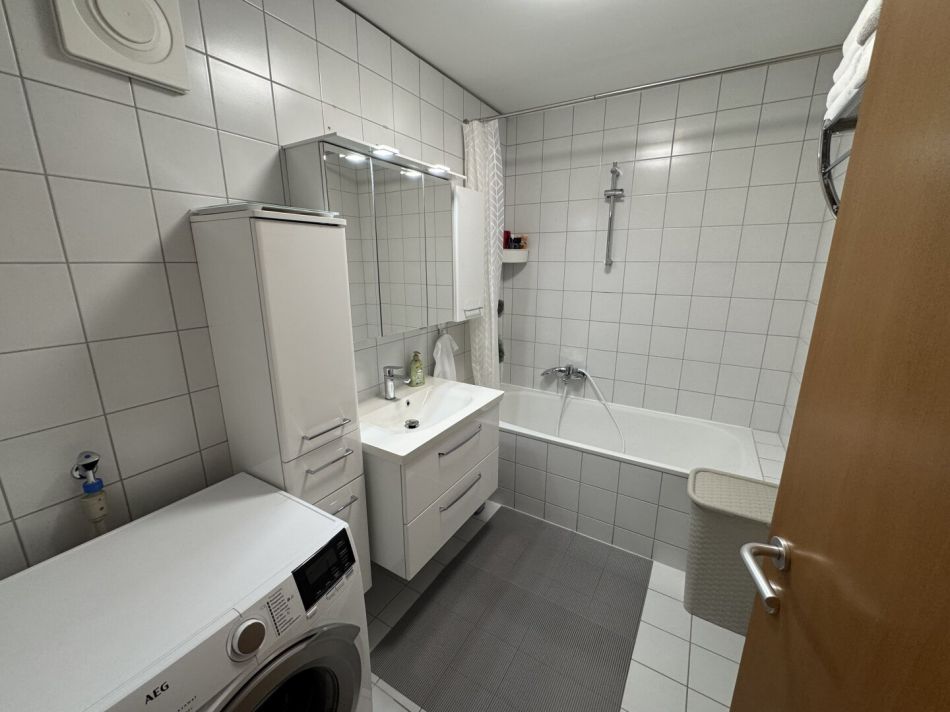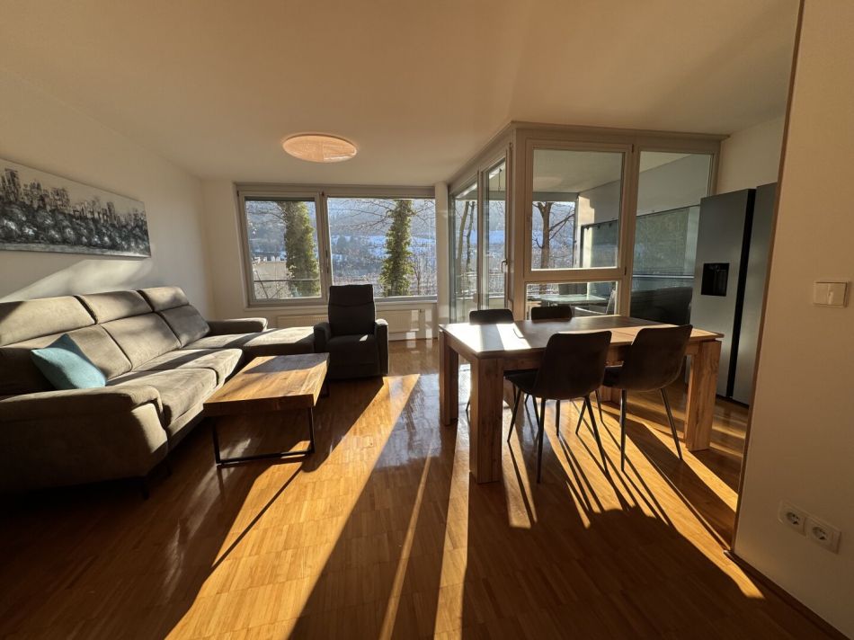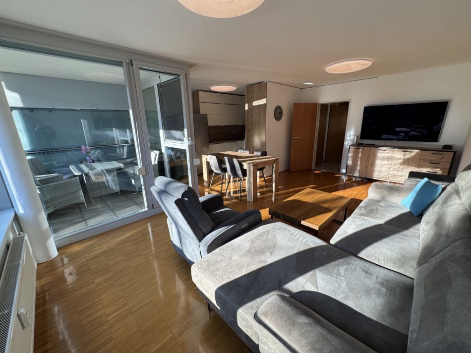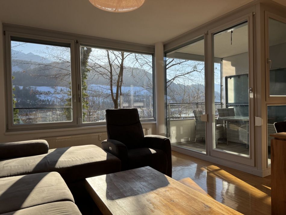 Das Herzstück der Wohnung ist die einladende Loggia, die Ihnen nicht nur einen herrlichen Ausblick auf die umliegenden Berge bietet, sondern auch ein perfekter Ort ist, um die ersten Sonnenstrahlen des Tages zu genießen oder den Abend bei einem Glas Wein ausklingen zu lassen. Diese kann mittels Rollo auch komplett geschlossen werden.