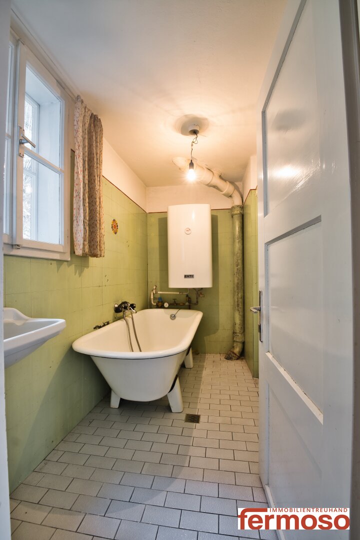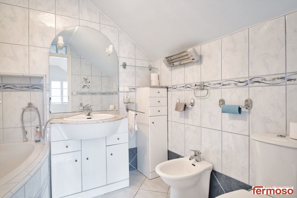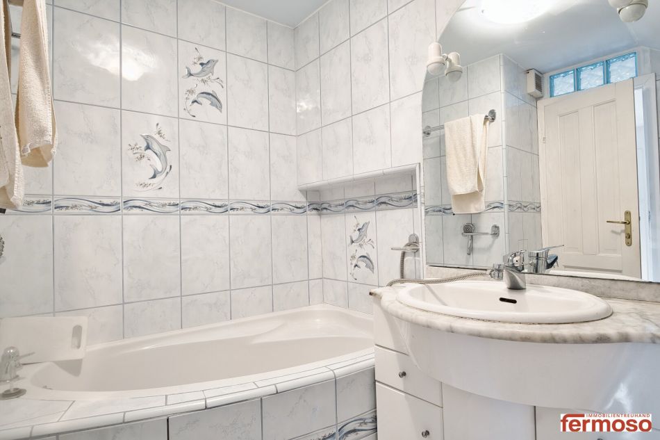 -Badezimmer mit Badewanne und Wc