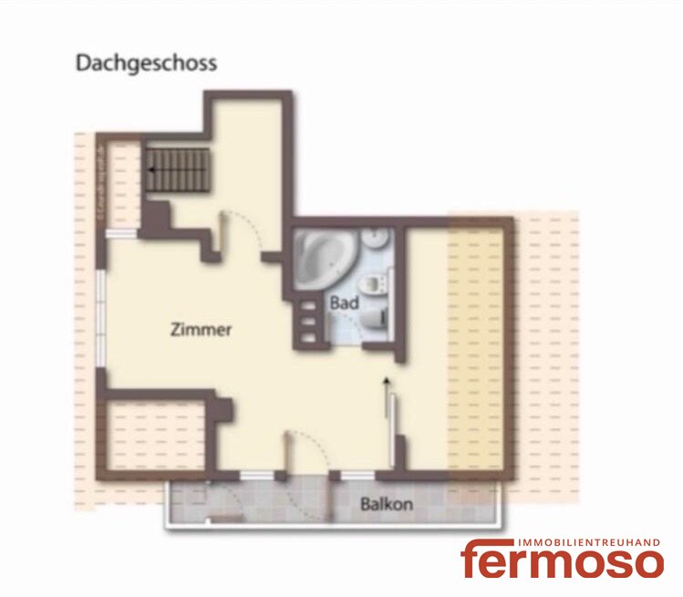 Über eine Treppe gelangt man ins ausgebaute Dachgeschoss mit 28m2 Wohnnutzfläche.