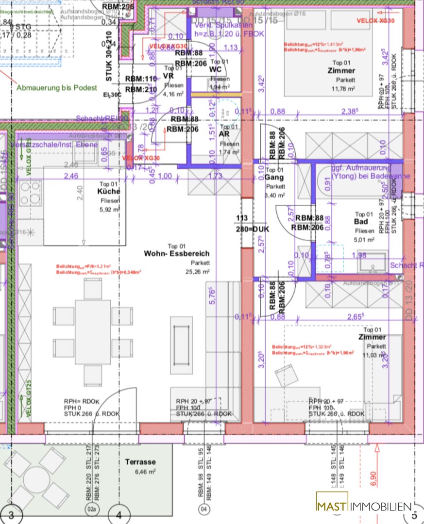 Nach Eintritt in die Wohnung gelangen Sie in ein großzügiges Vorzimmer mit ausreichend Platz für Ihre Garderobe, direkten Zugang in die sanitären Räumlichkeiten und das Wohnzimmer. Ausgestattet wird die Wohnküche mit einer hochwertigen Markenküche inkl. Geräte. Die beiden Schlafzimmer sind ca. 11 & 12 m² groß und bieten ausreichend Möglichkeiten für Ihre Möbel. Das modern gestaltete Badezimmer ist mit einer Badewanne, Handwaschbecken & einem WM-Anschluss ausgestattet. Selbstverständlich ist das WC separat begehbar.