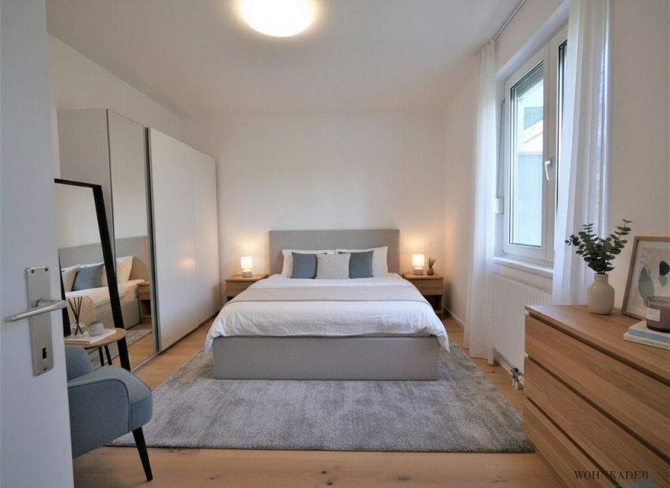 Das große Schlafzimmer schafft einen ruhigen Rückzugsort, und das lichtdurchflutete Wohnzimmer mit offener, voll ausgestatteter Küche sorgt für ein angenehmes Wohngefühl – perfekt für entspannte Stunden oder gemütliche Abende mit Freunden.