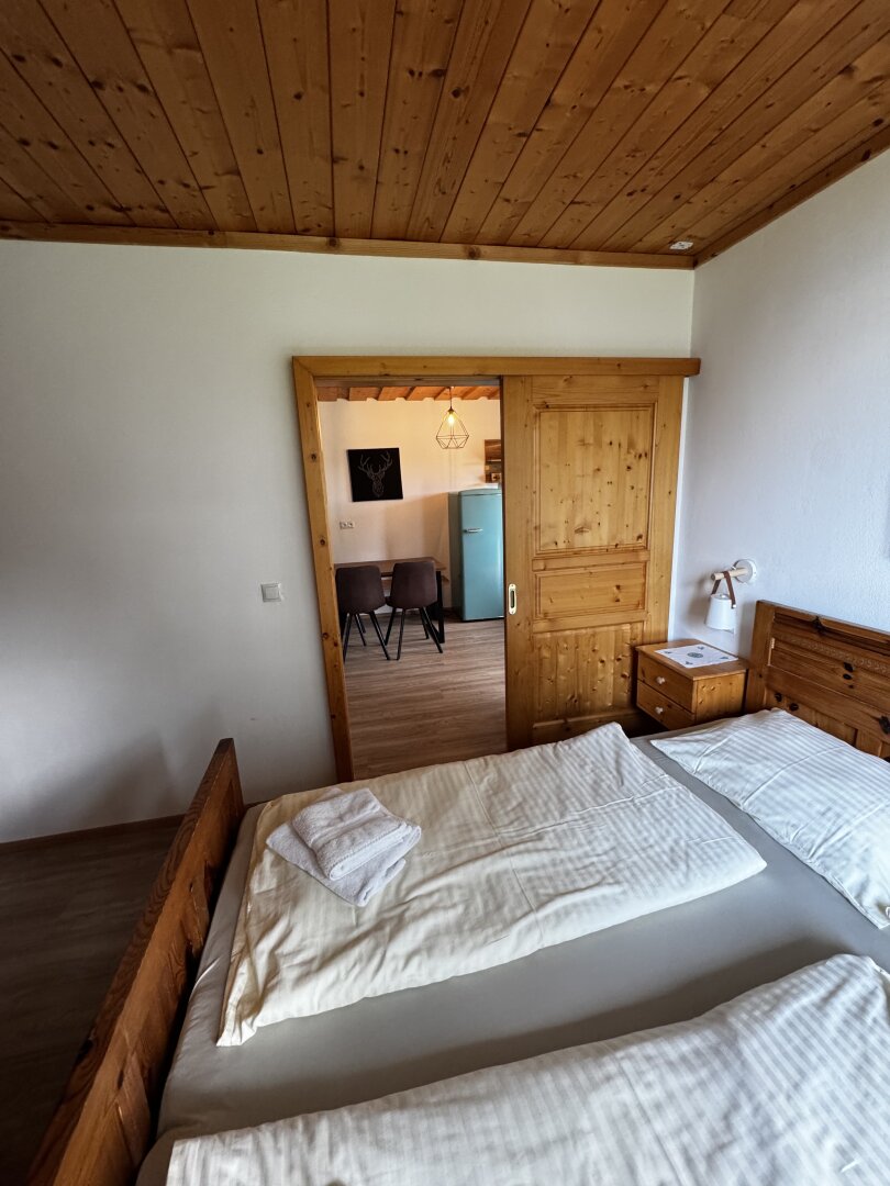 Schlafzimmer (derzeit mit Doppelbett und Stockbett ausgestattet)