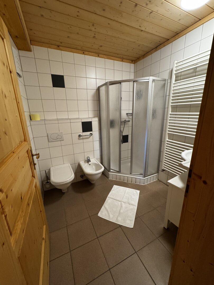 Badezimmer mit Dusche, Waschtisch, Bidet und Wc
