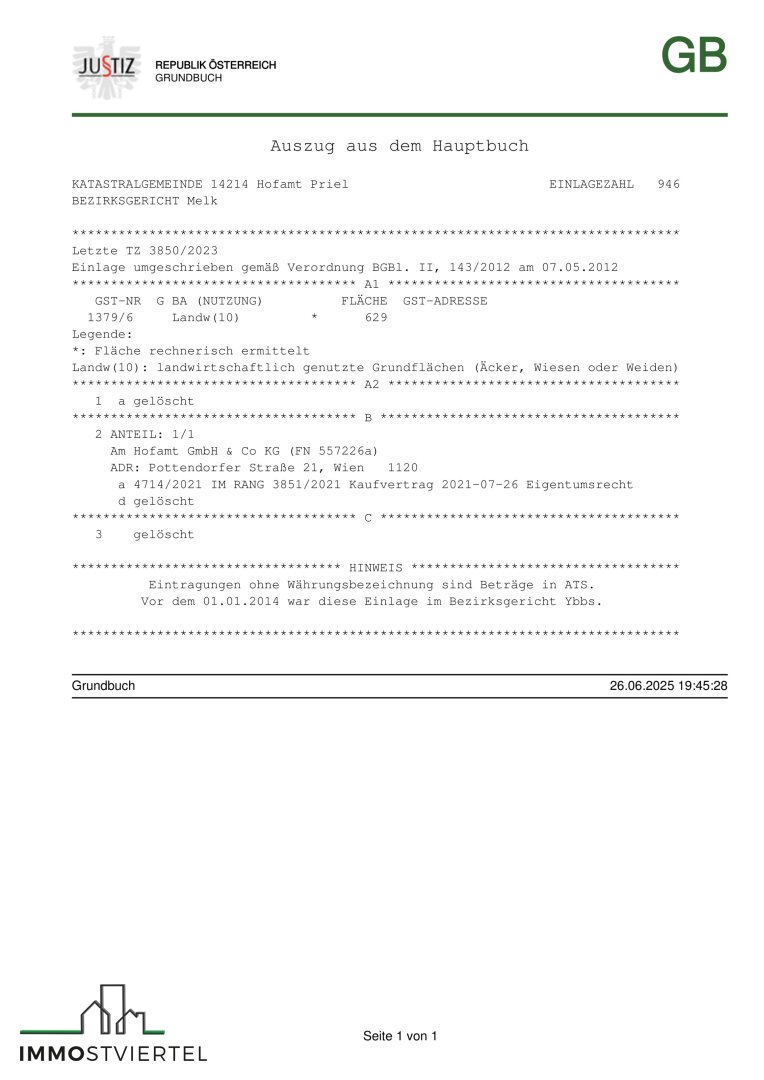 * Grundfläche gesamt 3683 m² ( Gst. Nr. 1383/23 mit 3054 m² und Gst. Nr. 1379/6 mit 629 m² )