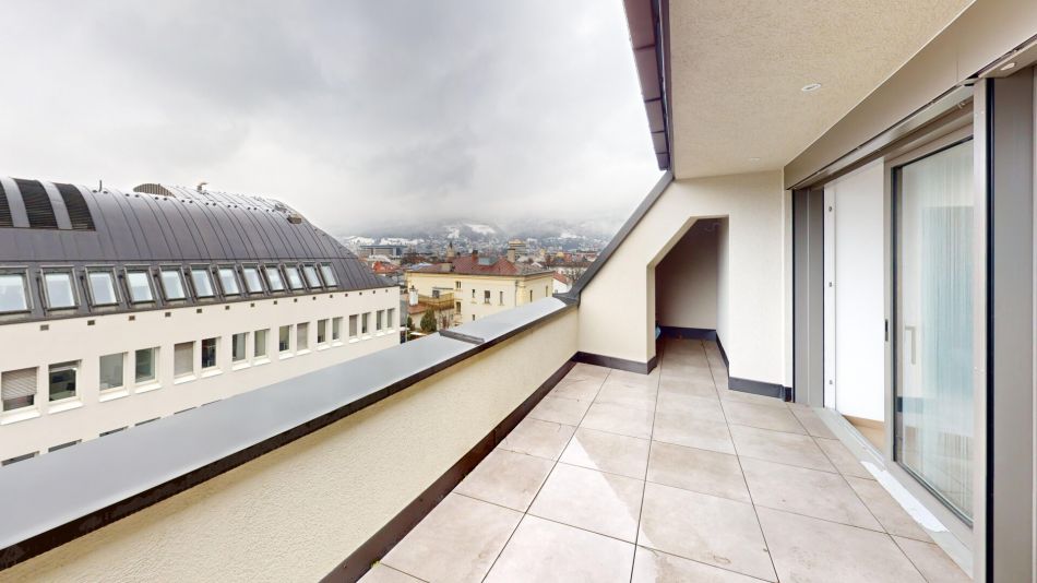 Exklusives 3,5-Zimmer-Penthouse in Innsbruck – 110 m² | 30 m² Außenflächen | Neubau 2024 | Absolute RuhelageIn zentraler Lage von Innsbruck gelangt dieses hochwertige Penthouse mit ca. 110 m² Wohnfläche zur Vermietung. Die 2024 errichtete Neubauwohnung überzeugt durch ihre Ost-West-Ausrichtung, großzügige Terrassen- und Balkonflächen (ca. 30 m² gesamt), moderne Architektur sowie einen beeindruckenden Stadt- und Bergblick.
