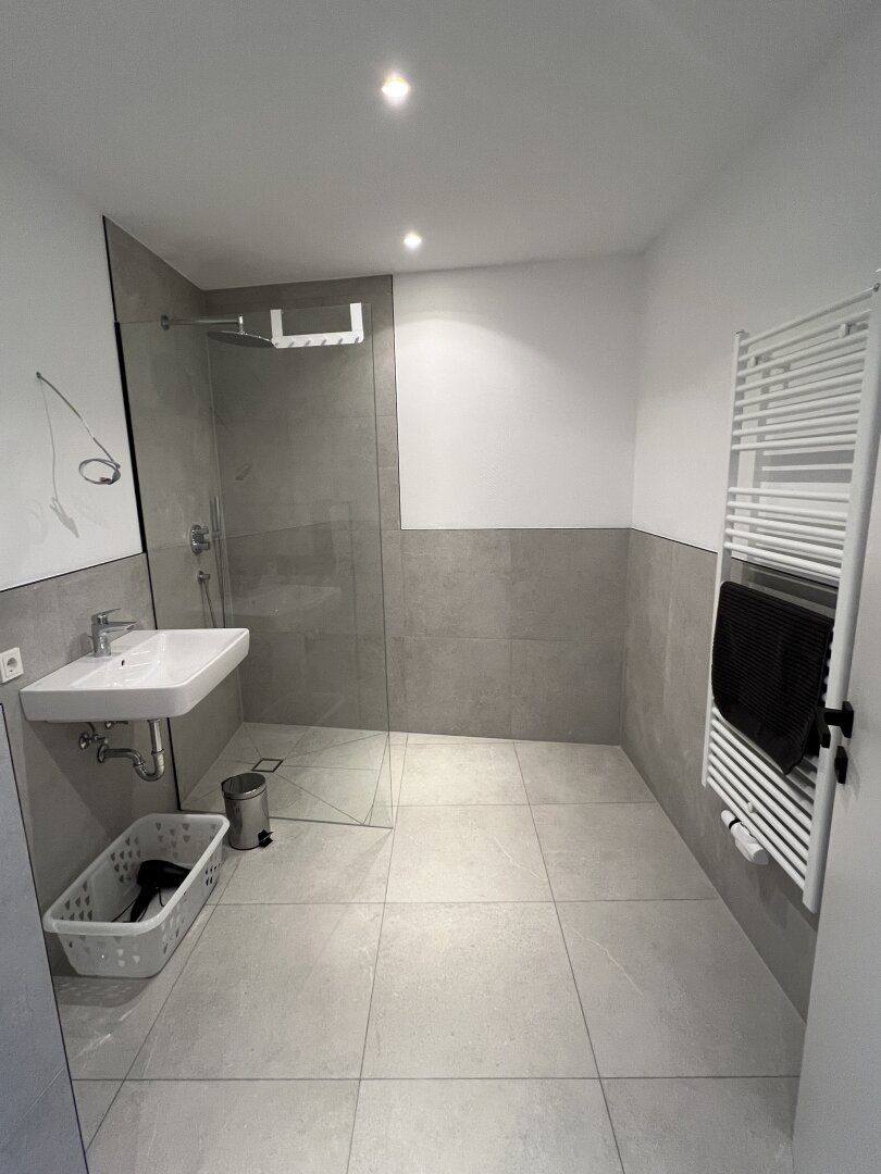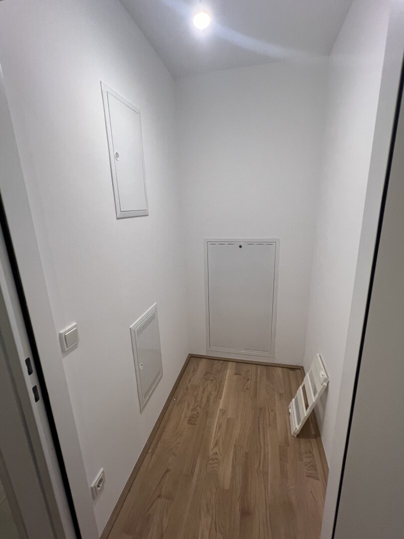 Zwei weitere Zimmer eignen sich ideal als Schlafzimmer, Arbeits- oder Gästezimmer. Das modern geflieste Badezimmer ist mit Dusche ausgestattet, das WC ist separat. Ein praktischer Abstellraum sowie ein Kellerabteil bieten zusätzlichen Stauraum.