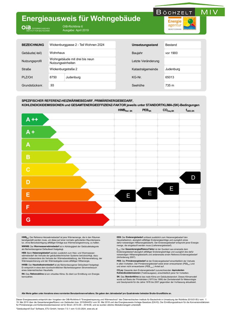 HWB (kWh/m²/Jahr): 179.4