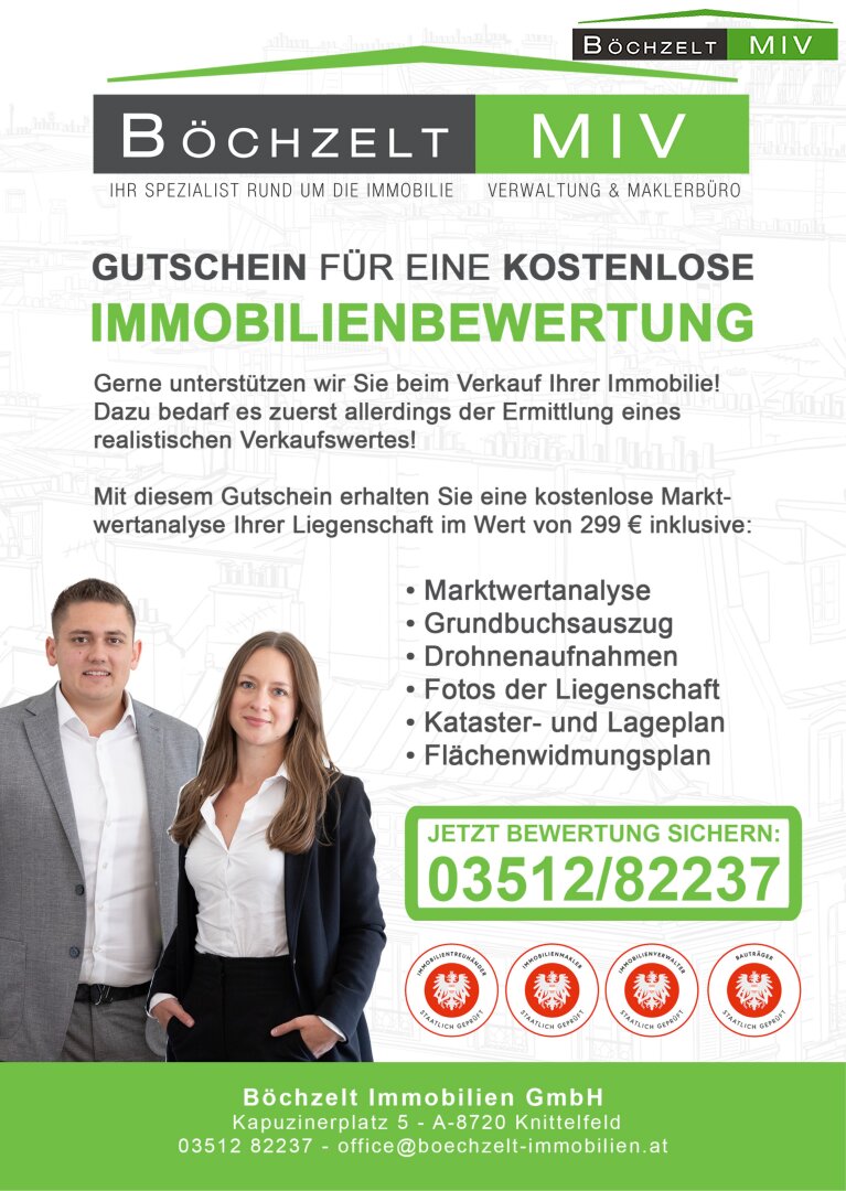 Durch die aktuelle Vermietung bis Ende Juli 2028 profitieren Käufer von einem laufenden, attraktiven Mietertrag, bevor sie die Wohnung später selbst beziehen oder weiterhin als Anlageobjekt nutzen. Die Kombination aus guter Anbindung an die Infrastruktur Judenburgs und der Arena Fohnsdorf, moderner Ausstattung, Eigengarten und kompaktem Grundriss ist in dieser Form selten und macht das Objekt besonders interessant für Paare, Singles mit Platzbedarf oder kleine Familien, die Wert auf qualitatives Wohnen mit eigenen Freiflächen im Grünen legen.