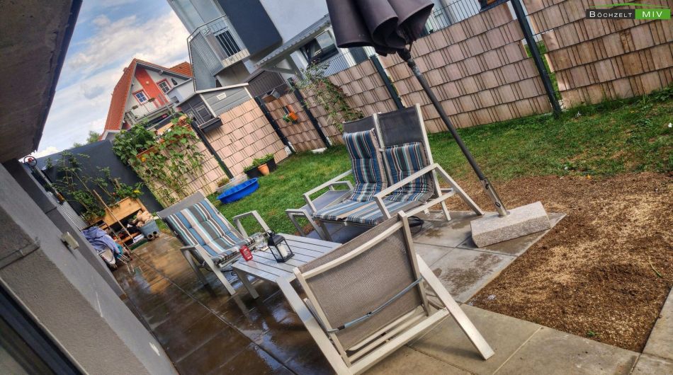 Erdgeschoss mit großzügiger Terrasse (ca. 15,92 m²) und Eigengarten (rund 43 m²)