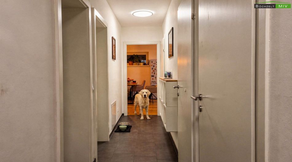 Ein zentraler Vorraum mit ca. 9,68 m² erschließt alle Räume und bietet Platz für Garderobe und Stauraum.