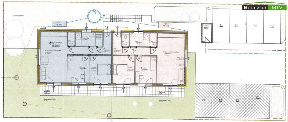 Zum Verkauf gelangt eine moderne 3-Zimmer-Gartenwohnung mit Eigengarten und Terrasse in einem kleinen Haus mit nur 4 Wohneinheiten. Die Wohnung liegt im Erdgeschoss und verfügt über eine Wohnnutzfläche von rund 74,3 m² laut Topografie. Herzstück ist der helle Wohn-Essbereich mit Zugang auf die großzügige Terrasse und in den Eigengarten. Die hochwertige Einbauküche ist im Kaufpreis von EUR 229.000,- bereits enthalten, ebenso wie zwei zugeordnete KFZ-Abstellplätze samt E-Ladestation direkt bei der Liegenschaft.Die Wohnung wurde erst vor wenigen Jahren in einem Neubau (Baujahr ca. 2022) errichtet und präsentiert sich daher in sehr gutem, nahezu neuwertigem Zustand. Durch die Klimatisierung im Wohnzimmer und in einem der Schlafzimmer, die energieeffiziente Bauweise, die grüne Umgebung sowie die gute Verkehrsanbindung eignet sich das Objekt ideal für Anleger, die langfristig modernen Wohnkomfort mit hoher Lebensqualität am Murtaler Mietmarkt anbieten möchten.