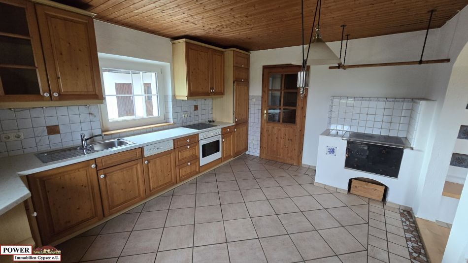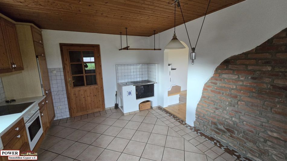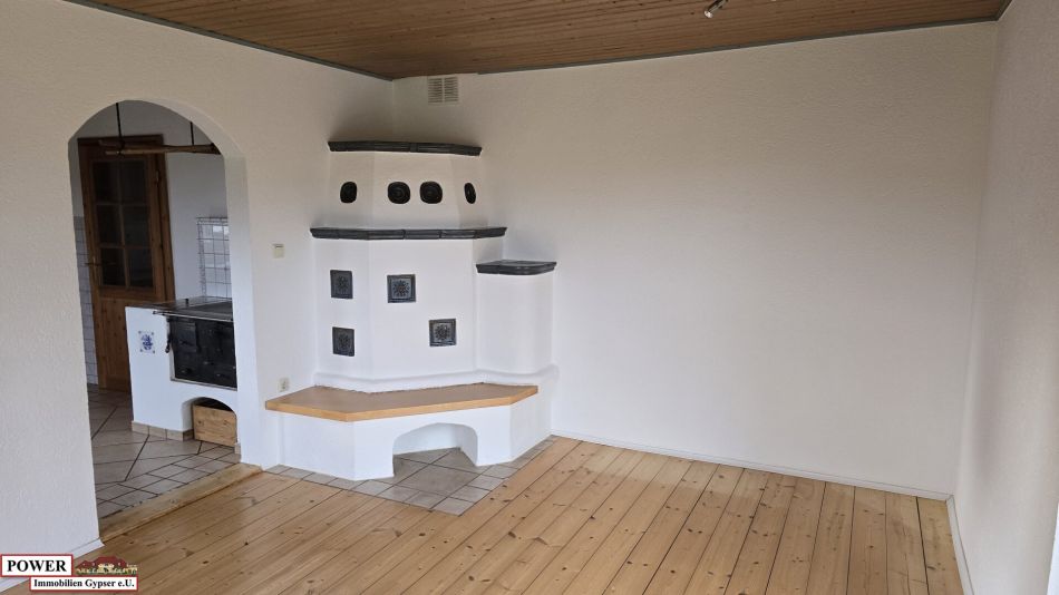 Ein Kachelofen befindet sich im Wohnraum, um die wohlige Wärme im Haus zu genießen und auch Heizkosten zu sparen.
