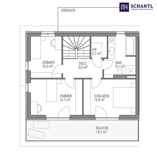Zusätzlich gibt es im 1.OG einen 18m² großen Balkon.