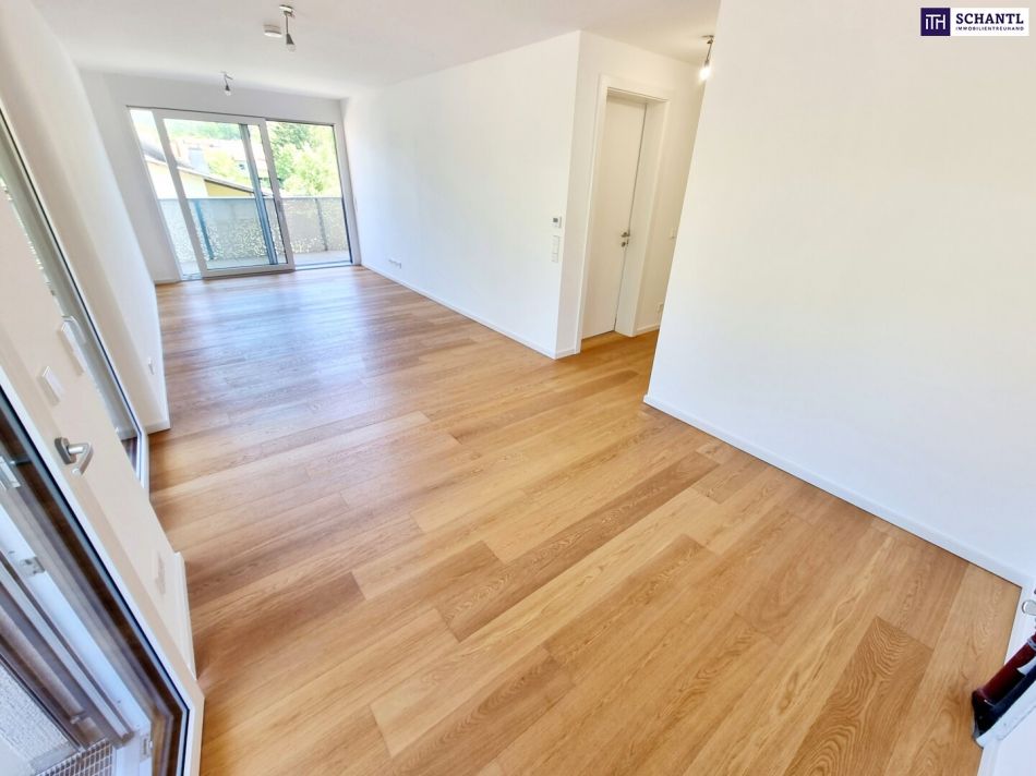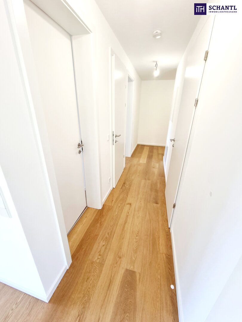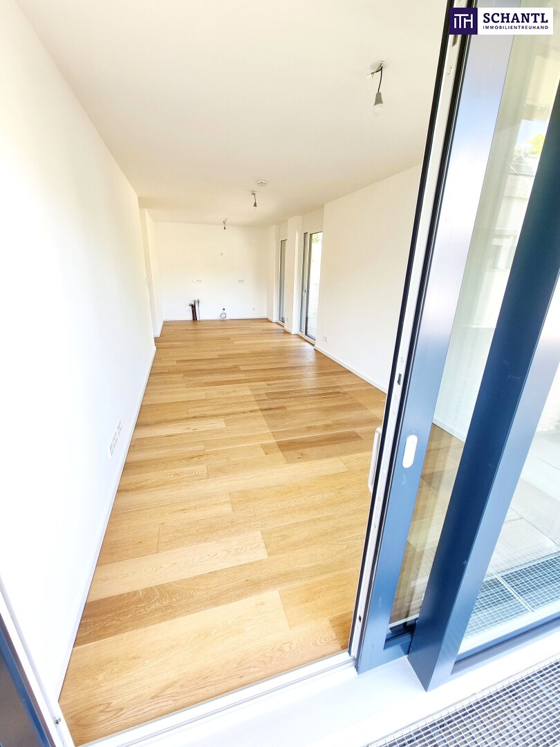 Zwischen Großstadt und Grashalm. Riesenbalkon / Riesenfreude! TOP Neubauwohnung mit viel Freiraum! Traumhafte Rundum-Terrasse + Ideale Raumaufteilung + Grün wohin das Auge reicht + Luftwärmepumpe!