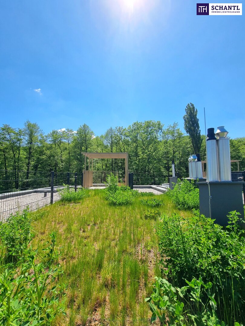 Ein Platz, der mehr kann als wohnen. Geniale Neubauwohnung mit WOW-Effekt! Riesiger Balkon und Terrasse + Privater Dachgarten + Grün wohin das Auge reicht + Luftwärmepumpe!