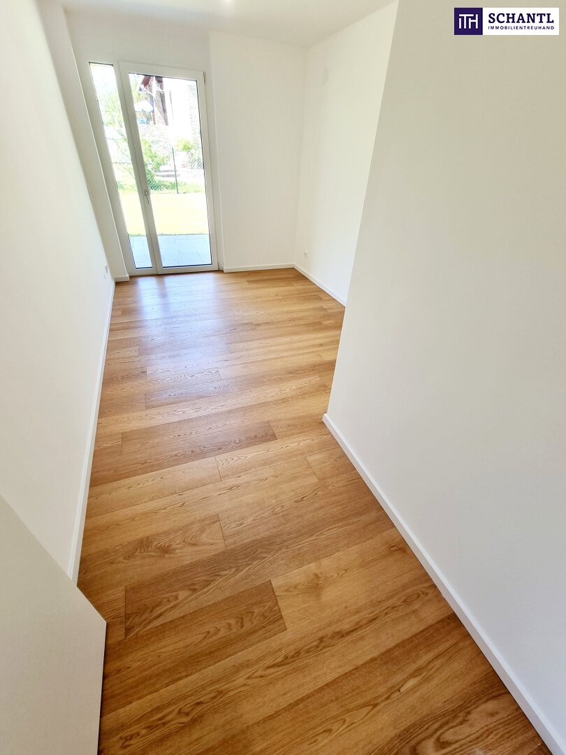 Ein Stück Natur – ganz für sich allein! Das perfekte Familienparadies! Geniale Neubauwohnung mit WOW-Effekt! Riesiger Eigengarten und Terrasse + 4 Zimmer + Grün wohin das Auge reicht + Luftwärmepumpe!