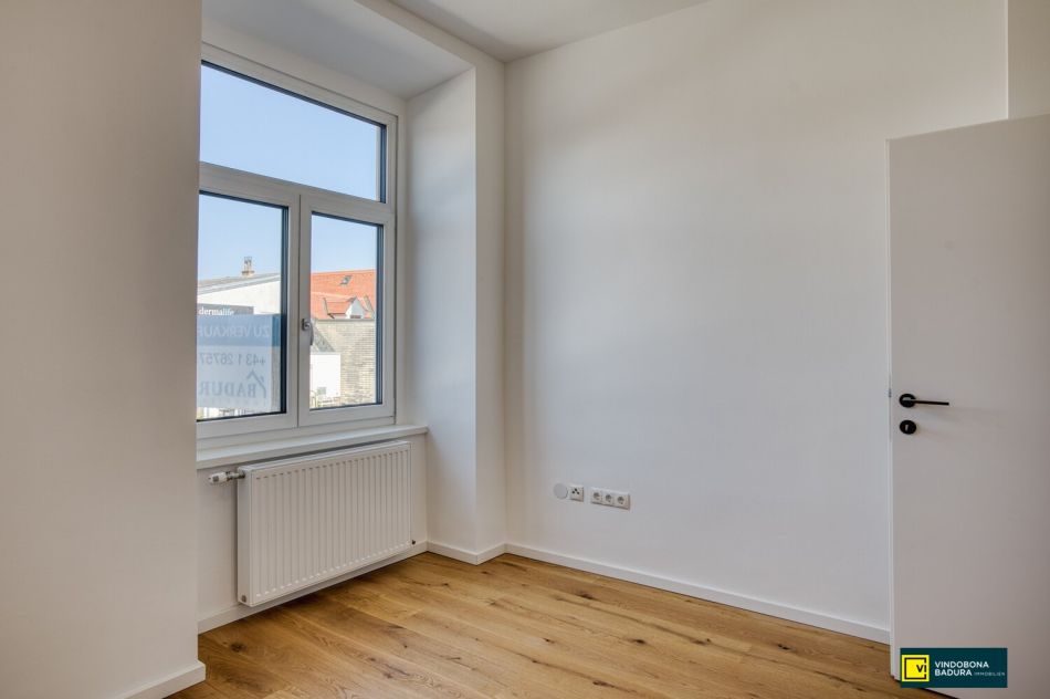 Zum Verkauf steht eine stilvolle Wohnung, in der sich historisches Flair und modernes Wohnen harmonisch ergänzen.Die Wohnung wurde kürzlich umfassend erneuert und wird als Erstbezug nach Sanierung angeboten. Der helle Wohn- und Essbereich kombiniert moderne Raumaufteilung mit einem neuen Parkettboden in Landhausdielenoptik und schafft ein angenehmes Wohngefühl. Das Badezimmer wurde mit hochwertigen italienischen Designerfliesen ausgestattet und präsentiert sich zeitgemäß und klar strukturiert.